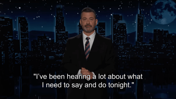 “This show is not important,” said Kimmel. “What is important is that we get to live in a country that allows us to have a show like this…. Our freedom to speak is what [talk show hosts in other countries] admire most about this country. And that’s something I’m embarrassed to say I took for granted until they pulled my friend Stephen [Colbert] off the air, and tried to coerce the affiliates who run our show in the cities that you live in to take my show off the air.