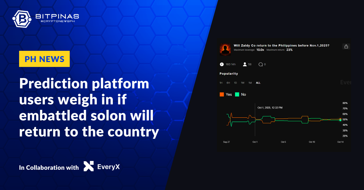 This article is published on BitPinas: Will Zaldy Co Return to PH? Users on EveryX Prediction Markets Weigh In
