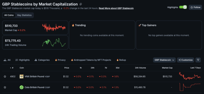 Hilariously, there are currently two GBP-backed stablecoins, VGBP and CGBP, which hold a combined value of $500,000, with a daily trading volume of just $10,000 between the two – which illuminates a bigger question: has the Bank of England really spent 3 years investigating a market with a half-million market cap, or is this a soft-entry for a wider stablecoin regime?
