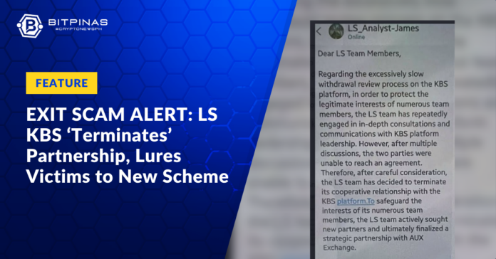 This article is published on BitPinas: LS KBS Collapses: Team ‘Cuts Ties’ with Exchange, Lures Users to New ‘AUX’ Platform as Funds Remain Frozen